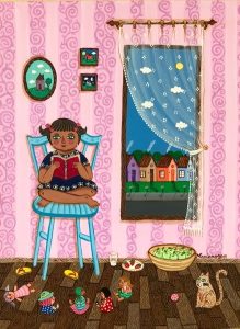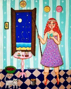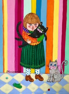 Vartuin tupaten täydessä, hälyisässä italialaisperheessä, jossa isoäiti, äiti ja enot tekivät aina taidetta kotona. Kuvittelin kaikkien perheiden olevan sellaisia, enkä koskaan pitänyt maalaamista lahjana. Siinä mielessä taide oli minulle sekä siunaus että kirous: maalaukset syntyivät koko ajan sisälläni, jopa unissani. Toisaalta maalaaminen ei ollut ammatti tai harrastus, se oli vain osa itseäni, enkä ajatellut, että se olisi jotain ainutlaatuisen hyvää näytteille ja jaettavaksi. Maalasin aina, mutta yritin pitää sen niin salassa ja piilossa kuin mahdollista: itse asiassa tuhosin kaiken maalaamani ennen ensimmäistä taidenäyttelyäni vuonna 2008. Siitä lähtien olen ajatellut antavani taiteelleni mahdollisuuden, enkä hävittänyt töitäni enää.