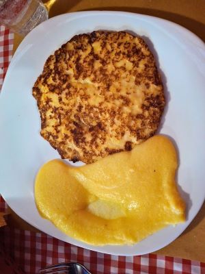 Vas: Saimme maistella paikallisia ruokia. Tässä polenta ja frico, jotka ovat hyvin perinteisiä italialaisia ruokia.