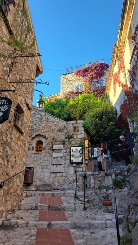 Èze puolestaan oli kuin aikamatka keskiajalle. Kylä kohoaa jyrkän kallion laella 400 metrin korkeudessa, ja sen kiviset kujat, käsityöläispuodit ja kukkivat sisäpihat loivat lähes taianomaisen tunnelman. Kävely Èzen kapeilla kujilla oli hiljentävä ja rauhoittava kokemus – kuin olisi astunut maailmaan, jossa aika pysähtyy ja jokaisen nurkan jälkeen huokailin ihastuyksissani. Kylän yläosassa sijaitseva eksottinen kasvipuutarha tarjoaa huikaisevat näkymät yli Rivieran.